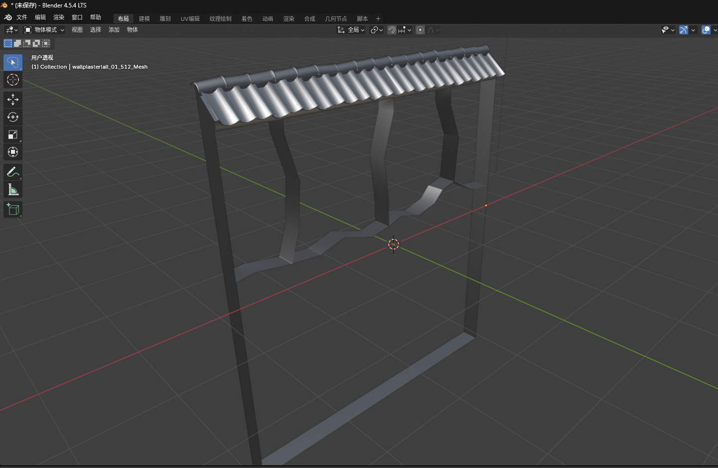 破损墙体边缘处面数过低,需要添加额外细节模型用以掩盖过于整齐的切口。在墙体受到不同区位的破坏,隐去部分三角面片后,细碎模型将被贴附在切口周围,为破损后的模型添加几何细节。