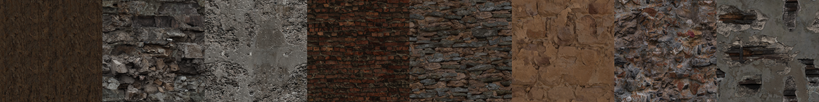 以下是使用在墙体边缘处的细节模型,由数个相同的细碎模型组合后贴附于切口处。类似的细节模型存在多种,引擎会根据破损模型类型(墙体、屋檐)选择合适的细节模型进行贴附。以下是适用于墙体的其中一种细节模型。