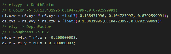 Result = lerp(ConstantColor, TextureColor^2, DepthFactor)